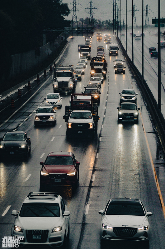 But today we are talking about the rainy day vibes. I was running around the city doing mundane errands trying to find somewhere to pull out the camera and see if I could find something, anything to photograph without getting soaked in the relentless autumn rain. I was all about to give up on the photo mission when I remembered the covered walking bridge that goes over the highway not far from my house. It should be good for something. I think I had about 10 minutes before I had to be somewhere else for the day so I pulled out my ahem digital camera… The Nikon D7000, a bit of a beast but it was done me well for the last decade more or less. Attached to it is an older Nikon 24-120mm lens. The one that has a maximum aperture of 5.6 or something silly. It’s big and heavy with a substantial amount of glass but it is a good fit for the digital dx camera. It gives me a pretty decent focal range of about 35-180mm.