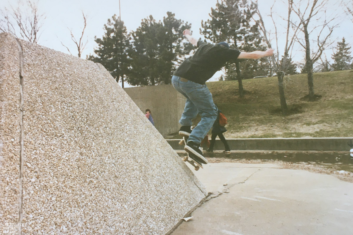 This was from one of those trips where I actually brought a camera and we headed out to the big O. I am sure I have some more photos somewhere from the ubiquitous covered half pipe tunnel or maybe I ran out of film by then! Either way here are a few shots of us rolling around doing some wall rides and wallies.