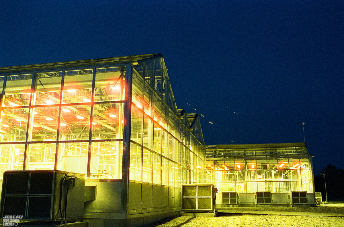 The next batch of photos had been simmering in the back of my head for some time now. In the middle of our city we have the Experimental Farm which is unique in its own right and in this space there are these greenhouses that light up the night sky. I have always wanted to take some photos of these and figured this was a good time. I had this cool film stock and thought I would see how it handled this type of situation. I got there and there was still a bit of light in the sky, not too bright but the darkness of night hadn’t set it yet. I took some shots around the greenhouses and took one through the window. I am very happy with these, the colours, the tones, the contrast between the lights and the sky all turned out beautifully! I had a few frames left to go but I left that for another day..