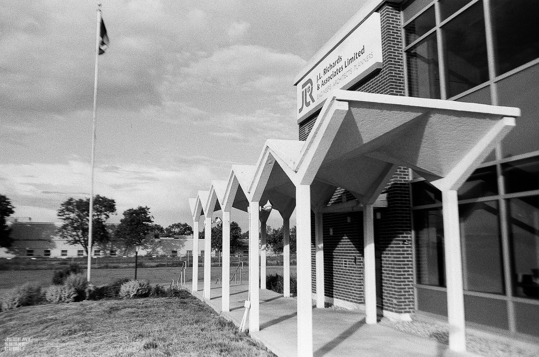 So this is a bit of an accompaniment piece to my last post as I had to change a roll of film on location to get a few more shots of the Civitan Club building in Smiths Falls. I had been shooting a roll of Kodak TMAX 400 and the roll abruptly ended at 24 frames… I was confounded and confused for a moment thinking my trusty F4 had jammed up or something and then quickly realized after rewinding the film that I had indeed loaded up a 24 exposure roll! I always try and shoot 36 exposure film as it cost the same to process and you get 30% more shots on a single roll. It really is a no brainer for me. However I must have bought a roll of 24 by mistake and loaded it up without noticing.